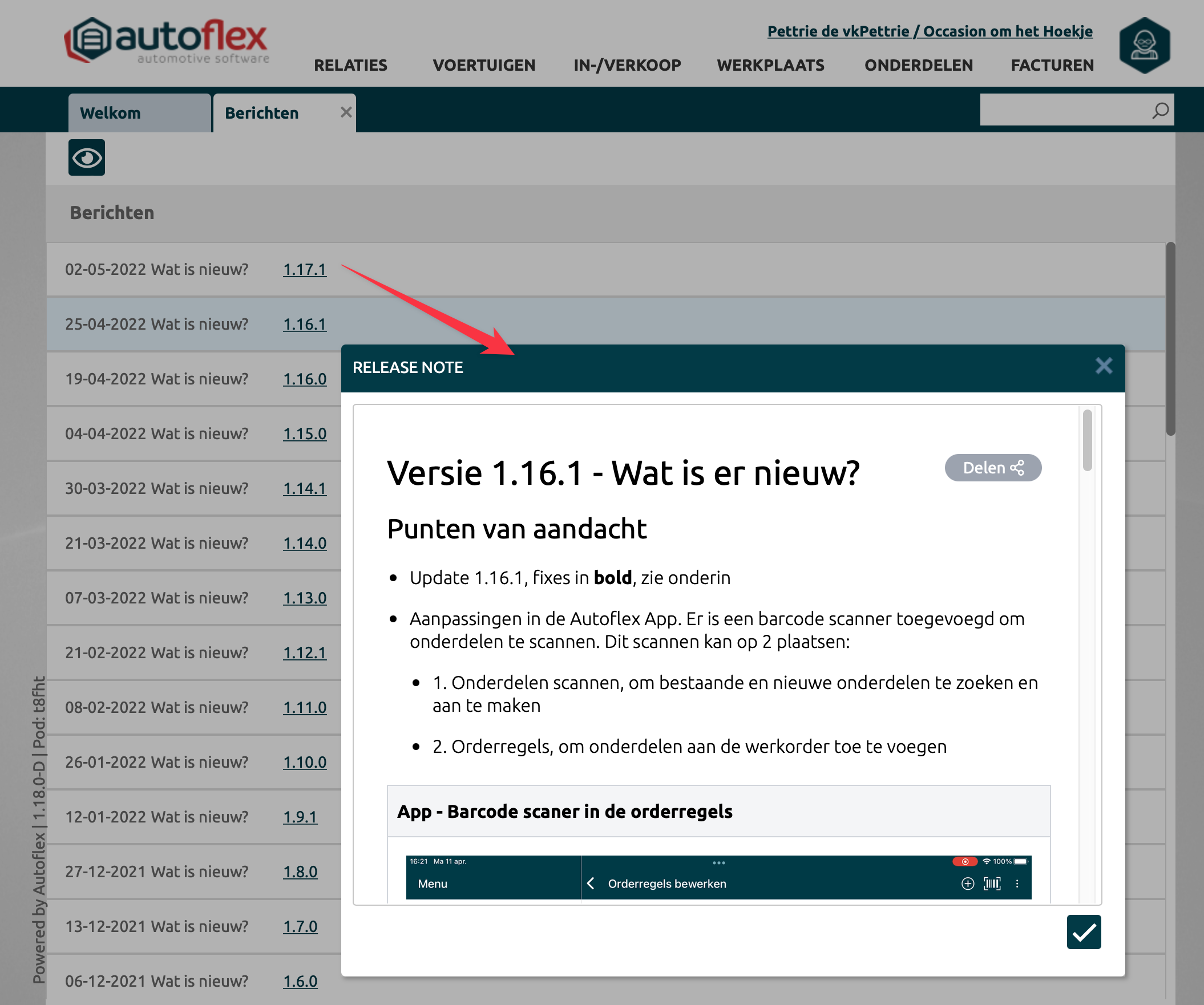 Waar zie ik de release notes? Hoe zie ik wat er nieuw is in deze release van Autoflex?