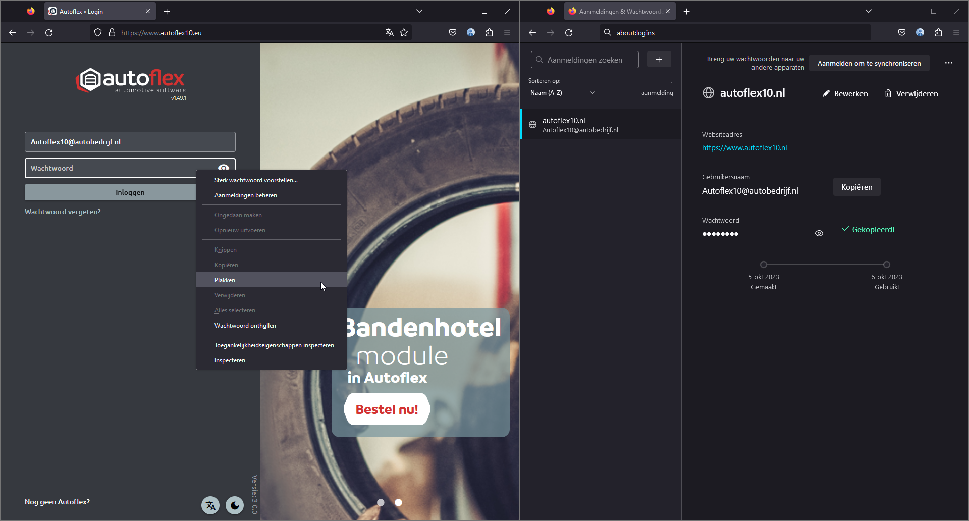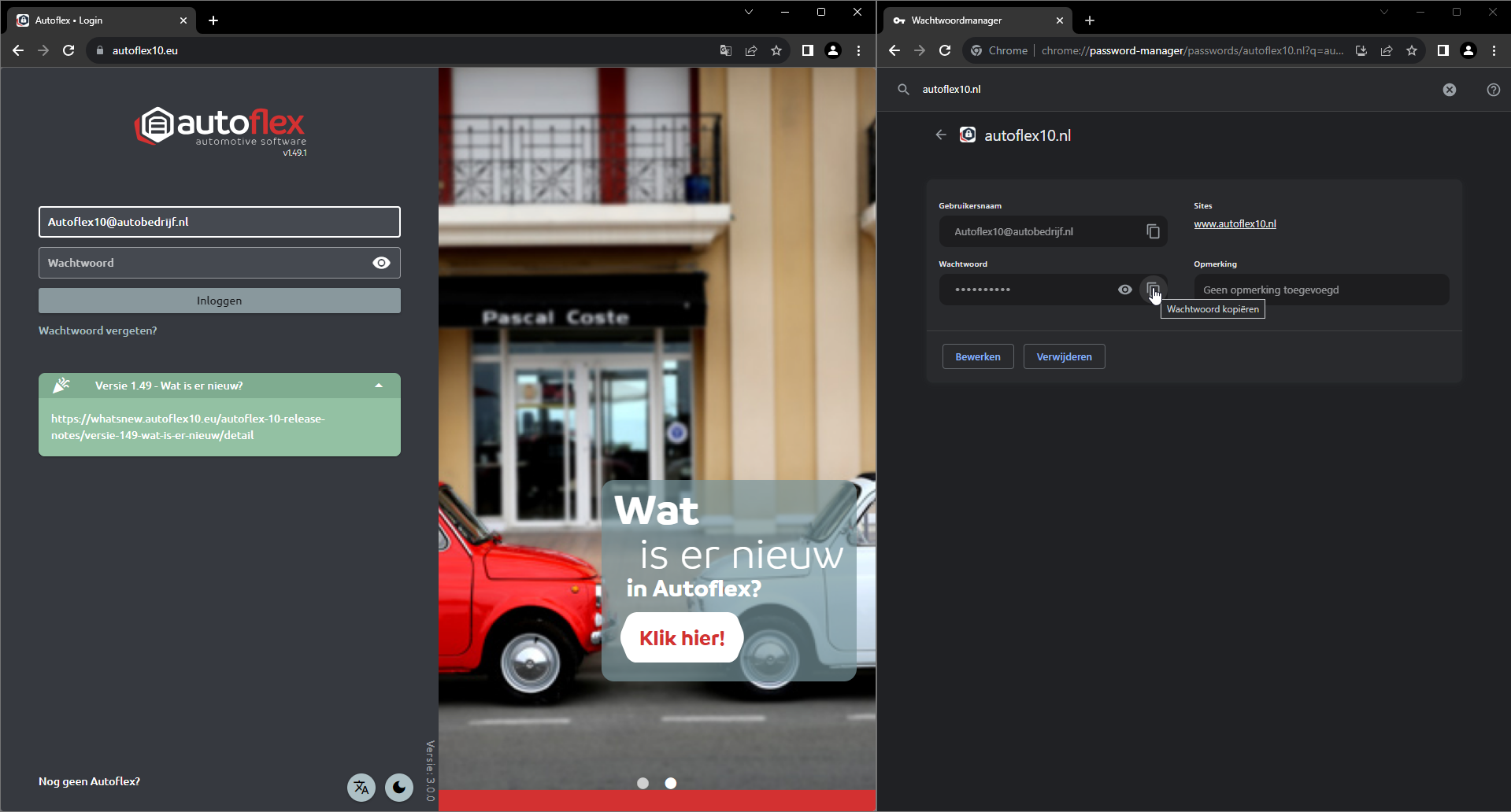 Open https://www.autoflex.eu in een nieuw venster en zet dit naast de pagina met de inloggegevens.