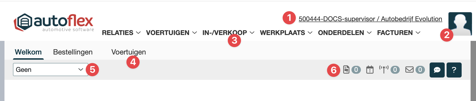 3 | Menu | Toegang tot de verschillende onderdelen van Autoflex | ||||