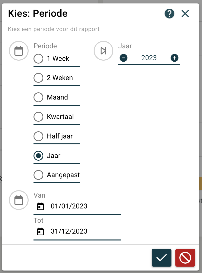 Kies de 1e periode |