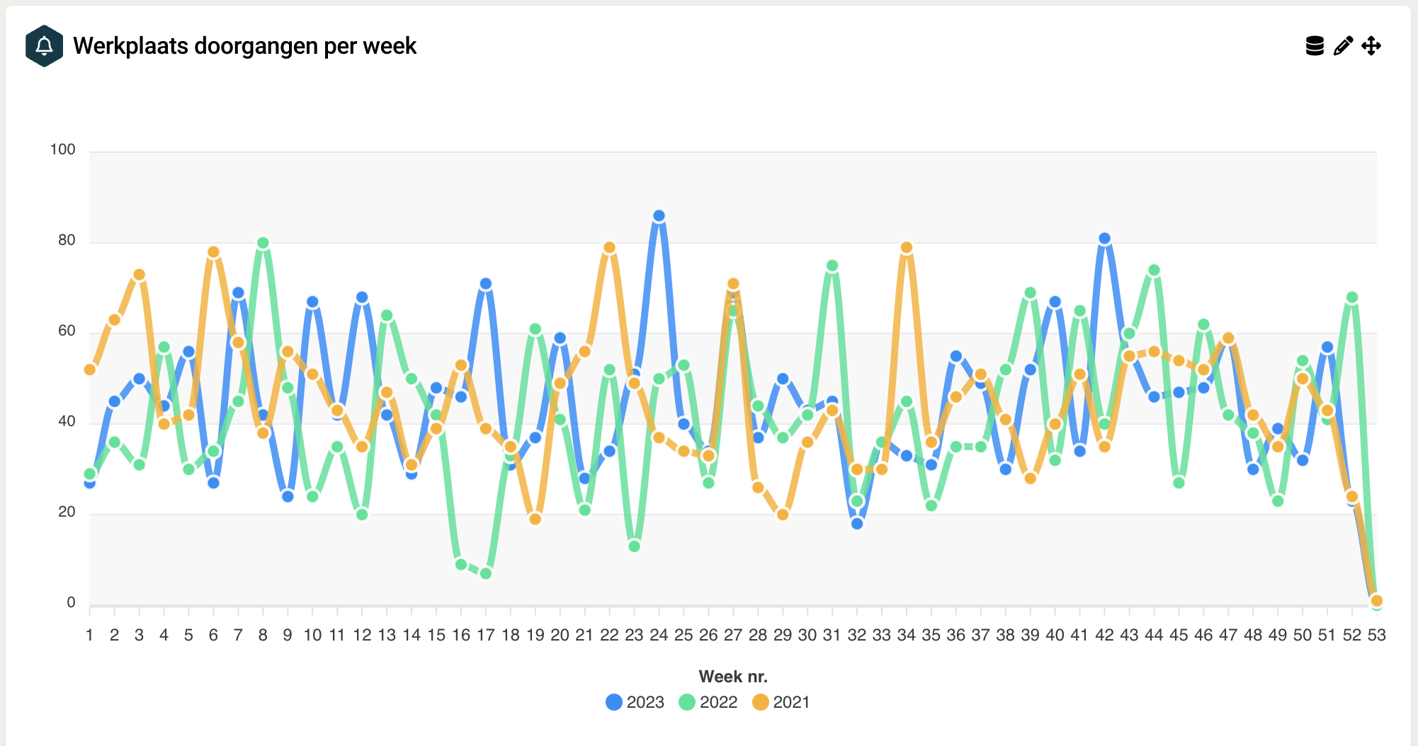 Bij grote grafieken met veel data en meerdere perioden kan het even duren voordat de data zichtbaar is!