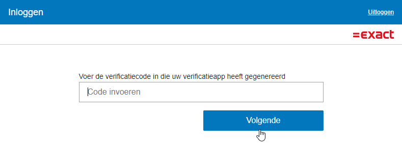 Vul hier de verificatiecode in met behulp van de authenticatie App op je mobiele telefoon. |