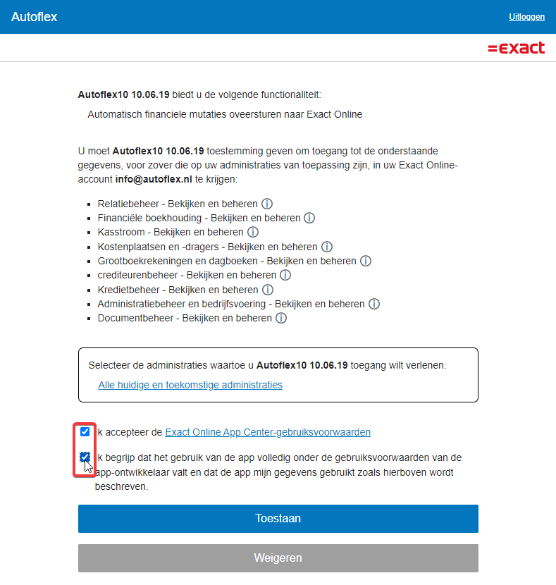 Administraties toegang geven voor de koppeling met Autoflex