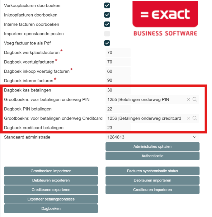 Instelling: Geef in Exact aan welk kasdagboek gebruikt moet worden.