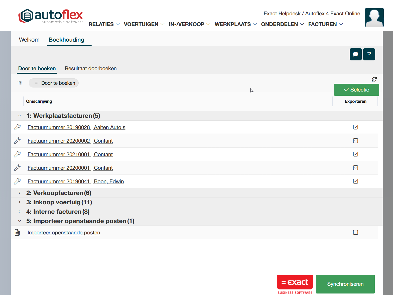 Hoe synchroniseer je de facturen in Autoflex naar je boekhoudsysteem?