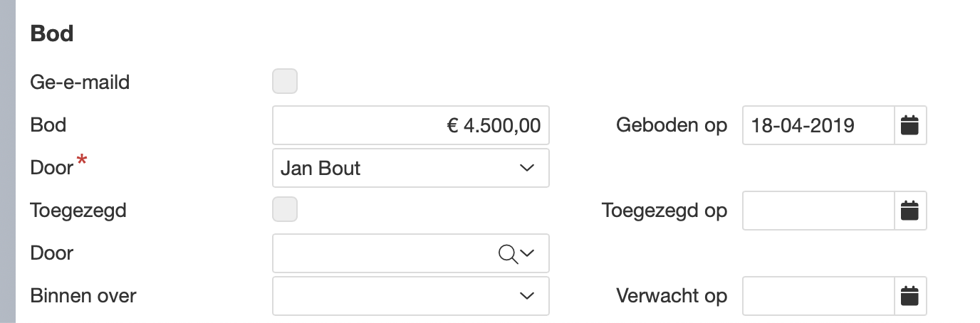 Bod = bedrag van het bod