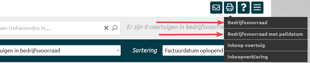 Selecteer nu de bedrijfsvoorraadlijst of de bedrijfsvoorraadlijst met peildatum |