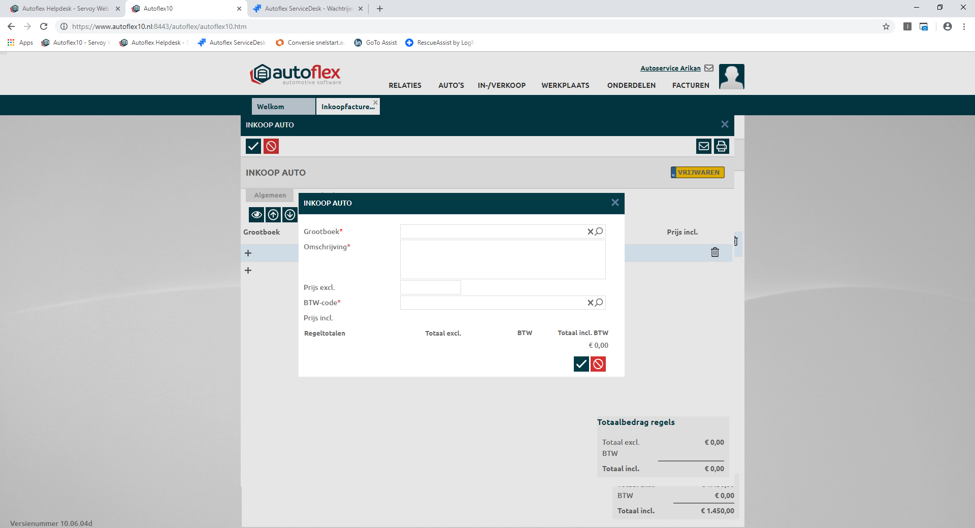 Voeg op de gebruikelijke manier een inkoopfactuur toe. Nu klik je alleen niet op de button met het voertuig maar op het plus-teken. In het volgende venster kun je bij grootboek aangeven welke kosten het zijn en aangeven op welk kenteken deze kosten geboekt moeten worden. Bij kostensoort vul je in of het garantie- of opknapkosten zijn.