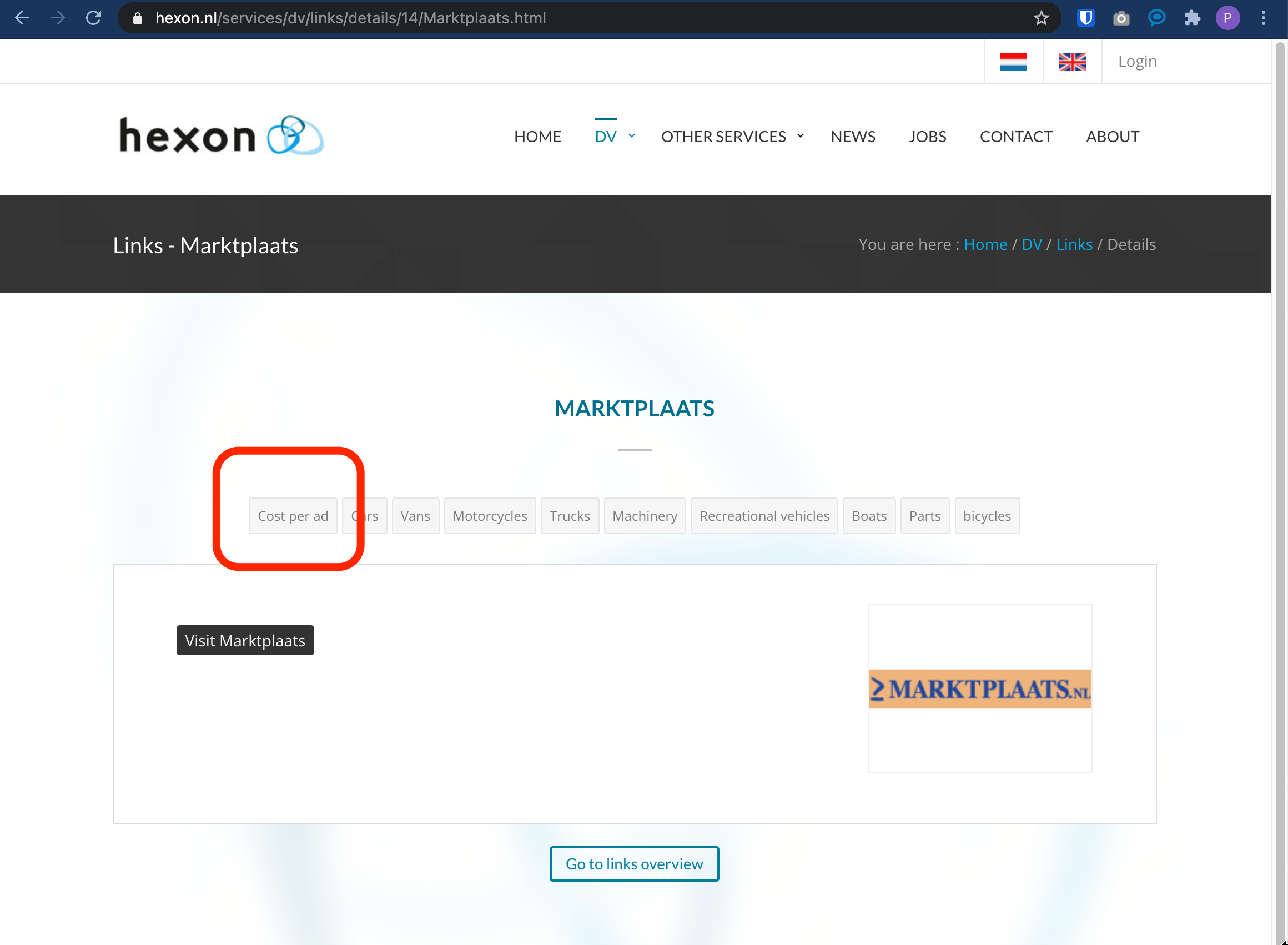 Als er kosten zijn verbonden aan een publicatie website dan is dit te zien, als deze tag zichtbaar is: Cost per ad https://www.hexon.nl/services/dv/links/details/14/Marktplaats.html |