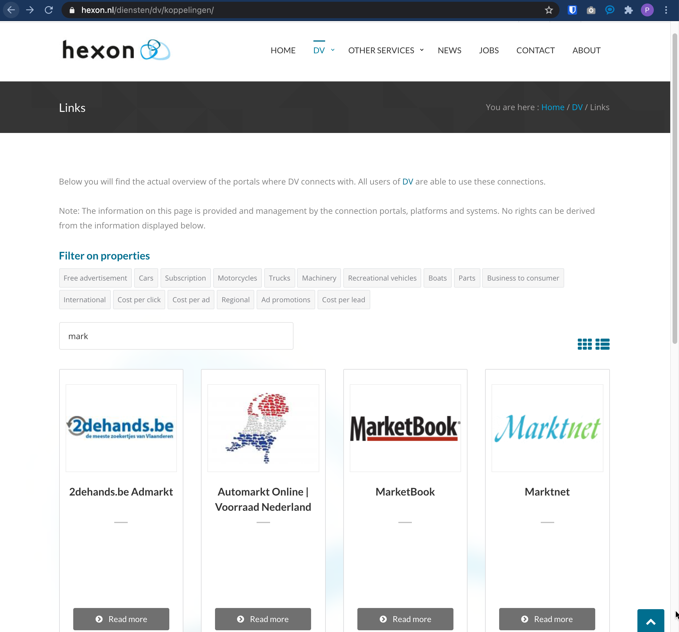 Publiceren - portalen waarmee Autoflex en Hexon een koppeling hebben