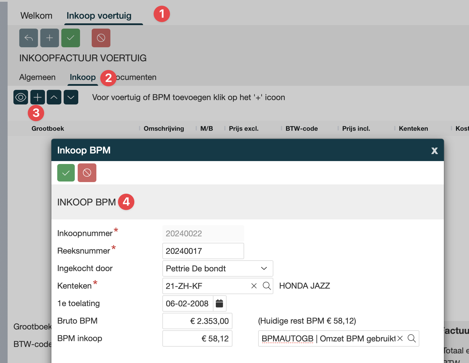 Stap 2 - Inkoop BPM, kenteken aanpassen