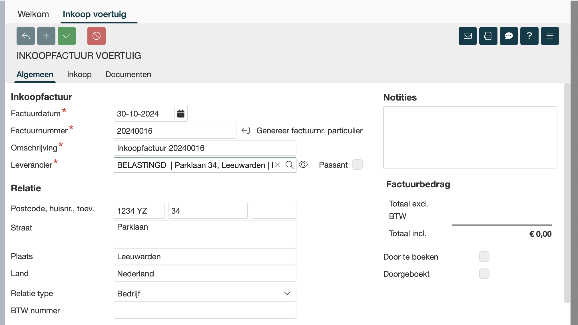 Koop je een buitenlandse auto in, dan wijkt de BPM vaak af. Vink daarom de BPM berekening uit, en pas het bedrag bij BPM inkoop aan. Wordt het BPM bedrag op een later moment bekend, dan koop je deze in via een aparte factuur. Zet het BPM bedrag in deze inkoop dan op €0,00. |