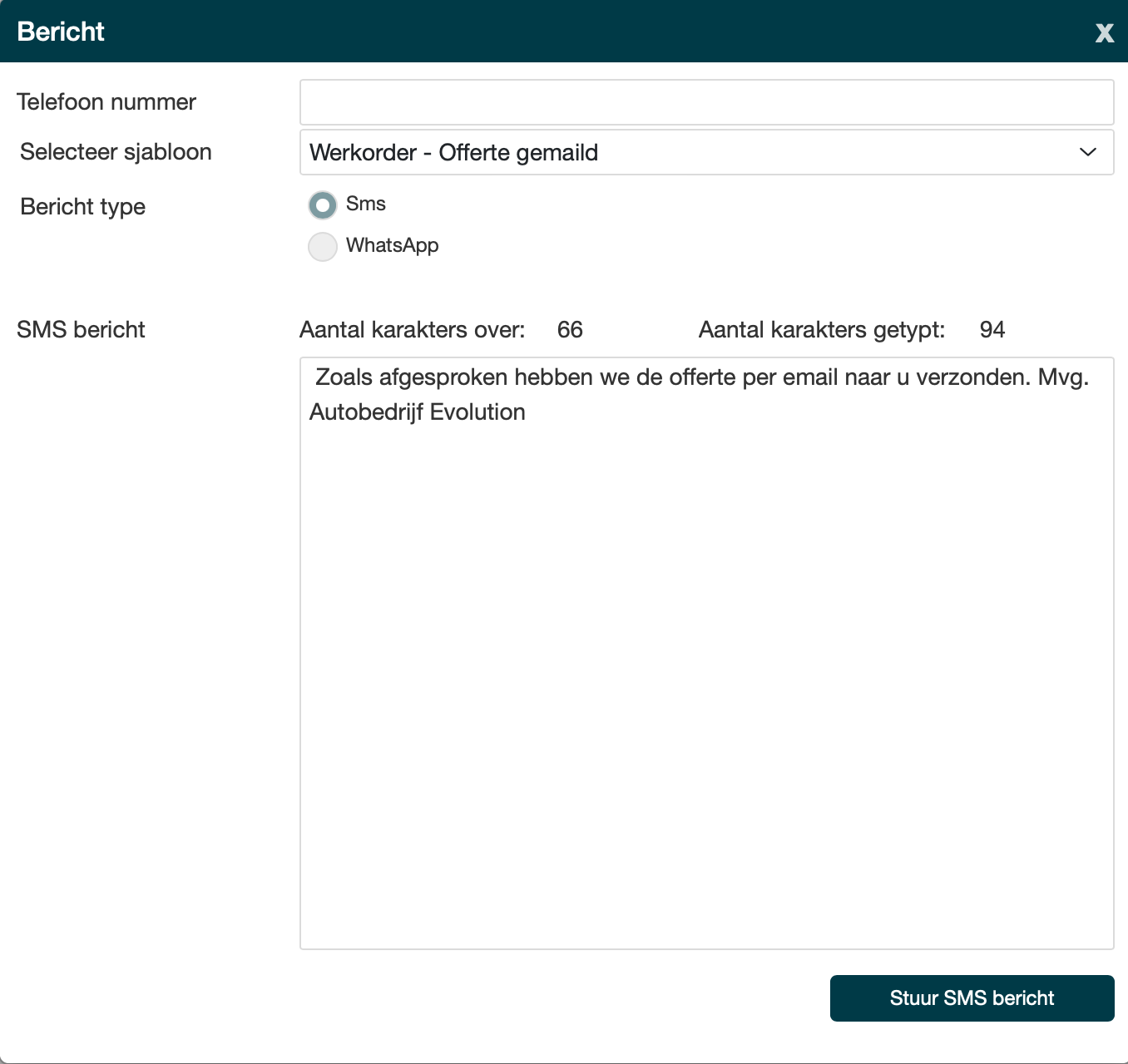 Ondanks dat SMS start met een bepaald sjabloon, kun je ten alle tijden de tekst nog bewerken of aanvullen voordat je het bericht verstuurd.