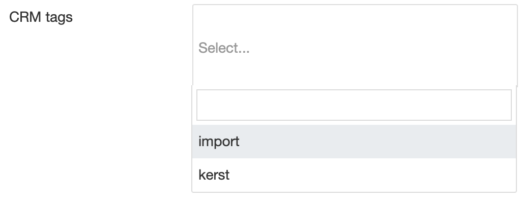 Het CRM tags veld toont nu de 2 geselecteerde CRM tags |