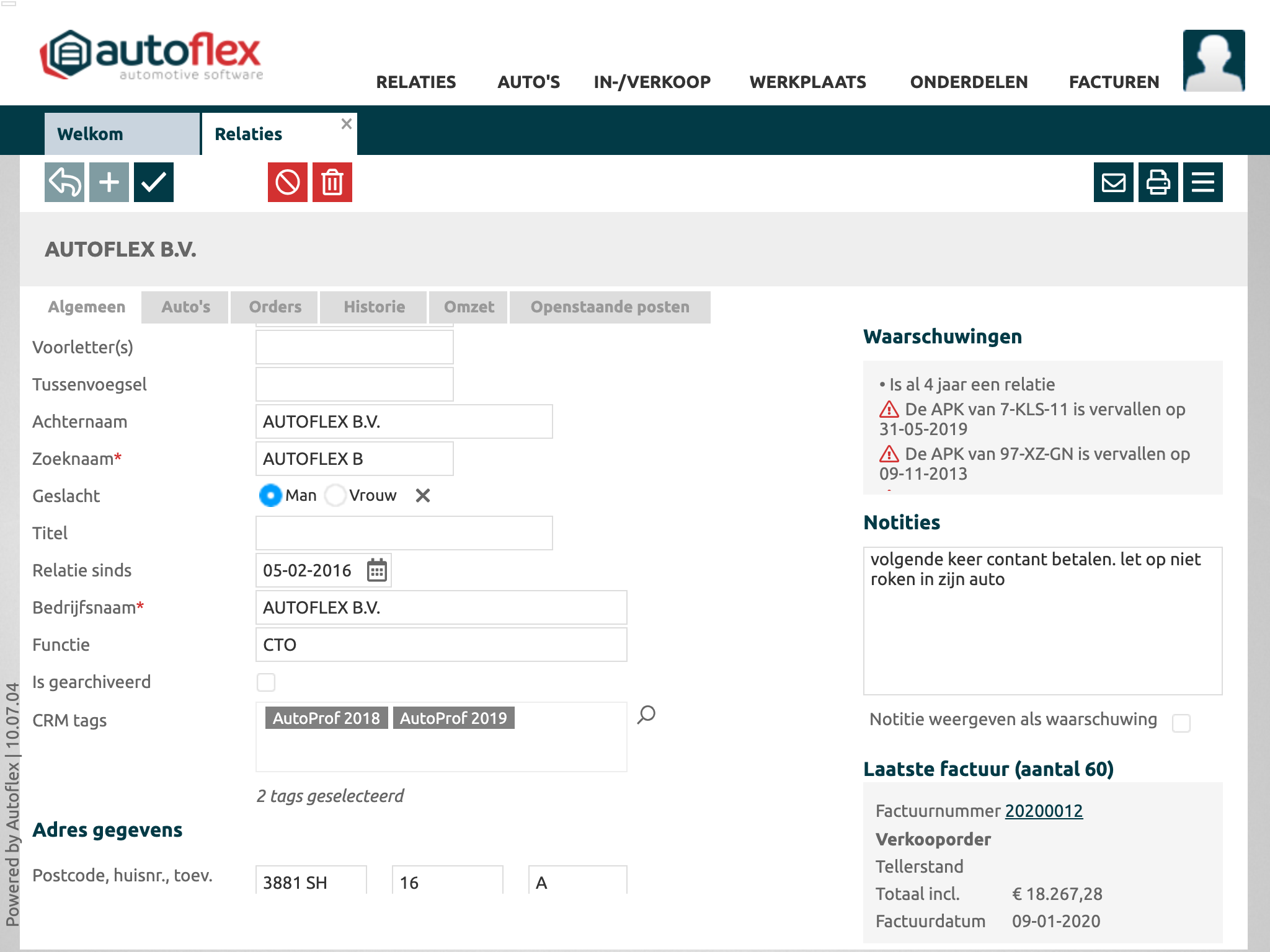 Bij een relatie op het tabblad Algemeen kun je de reeds bestaande CRM tags koppelen of direct nieuwe aanmaken welke voor alle relaties binnen je omgeving beschikbaar zijn.