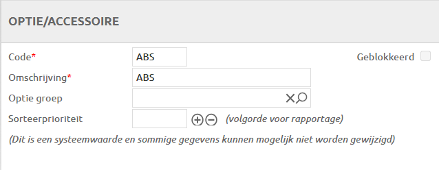 Optie groep: kies een groep, voor meer informatie zie: Optie groepen