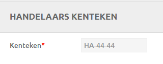 Een handelaars kenteken kan je gebruiken in het Proefritten formulier.