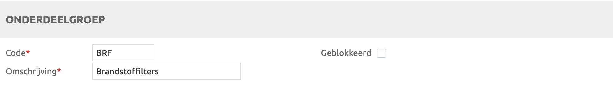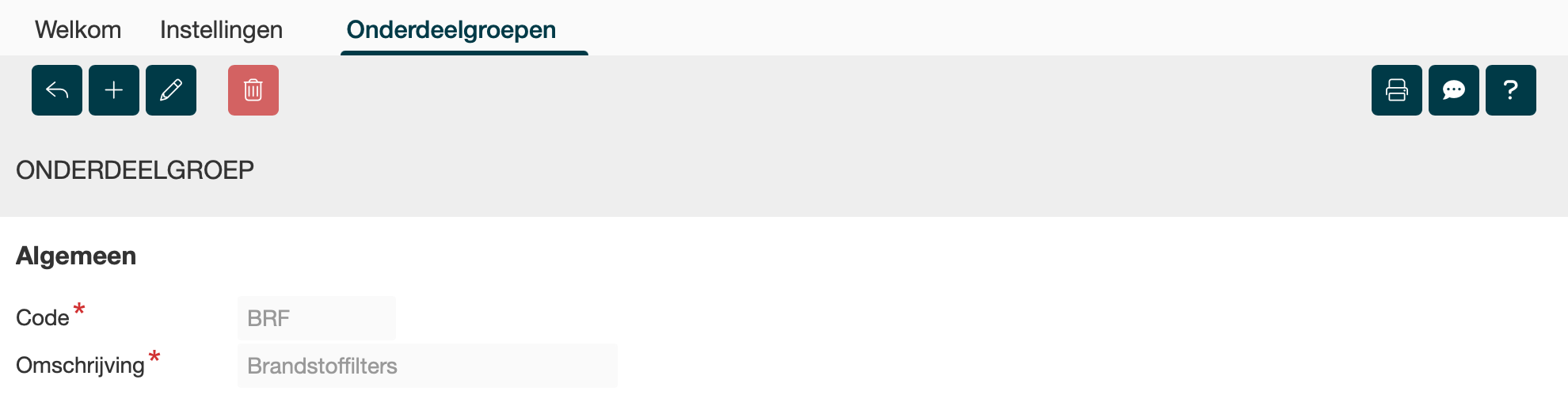 Onderdeelgroep detail scherm |
