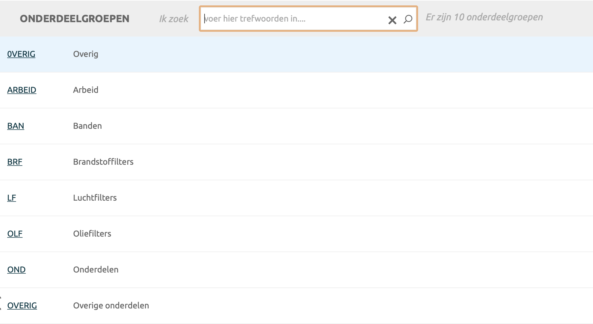 Onderdeelgroep lijst