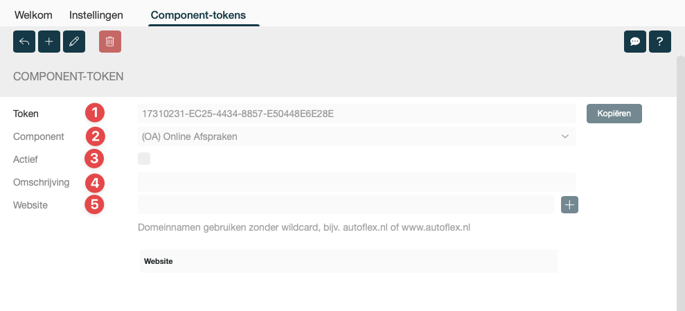 Component-tokens worden gebruikt om Autoflex componenten die in je eigen website actief kunnen worden gemaakt te koppelen met je eigen Autoflex 10 omgeving.