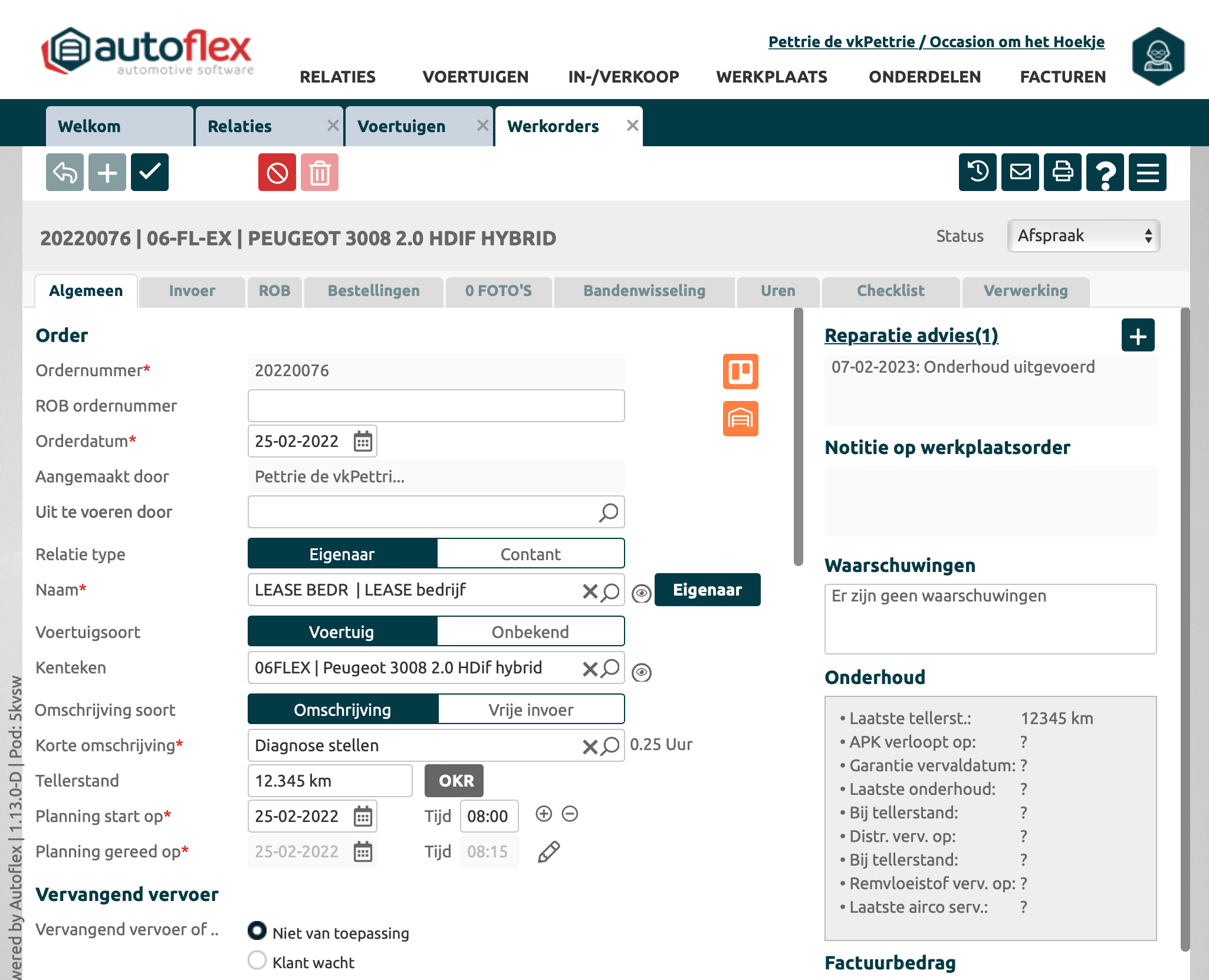 Hoe werkt het maken van de werkorders in Autoflex voor het ROB? Hoe kan ik een werkorder maken voor een lease voertuig? Als ik een lease-auto heb voor de werkplaats hoe koppel ik dit met het ROB?