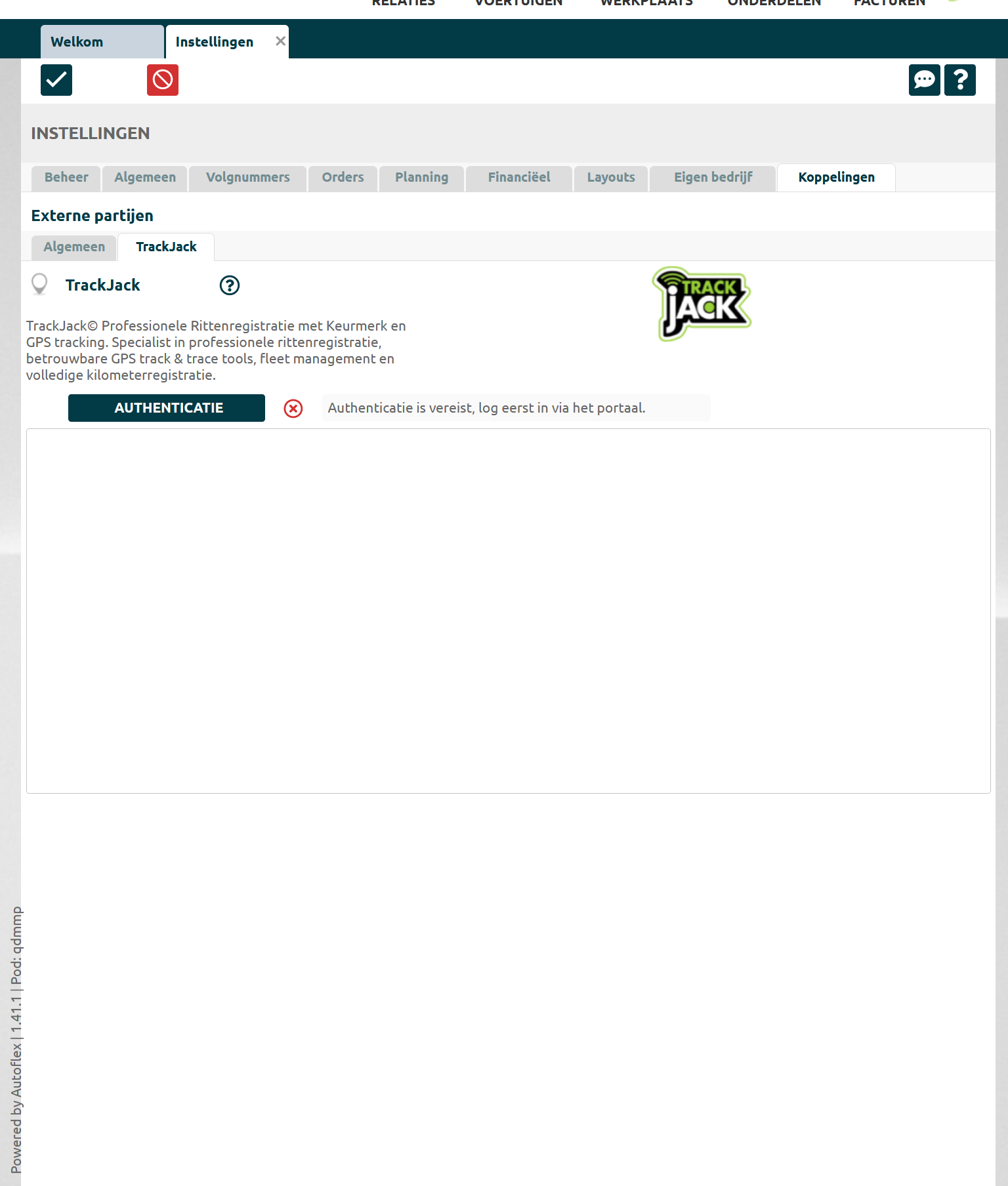 Voordat u aan de slag kan gaan met de TrackJack koppeling binnen autoflex, dient u eerst uw TrackJack account te koppelen met Autoflex.