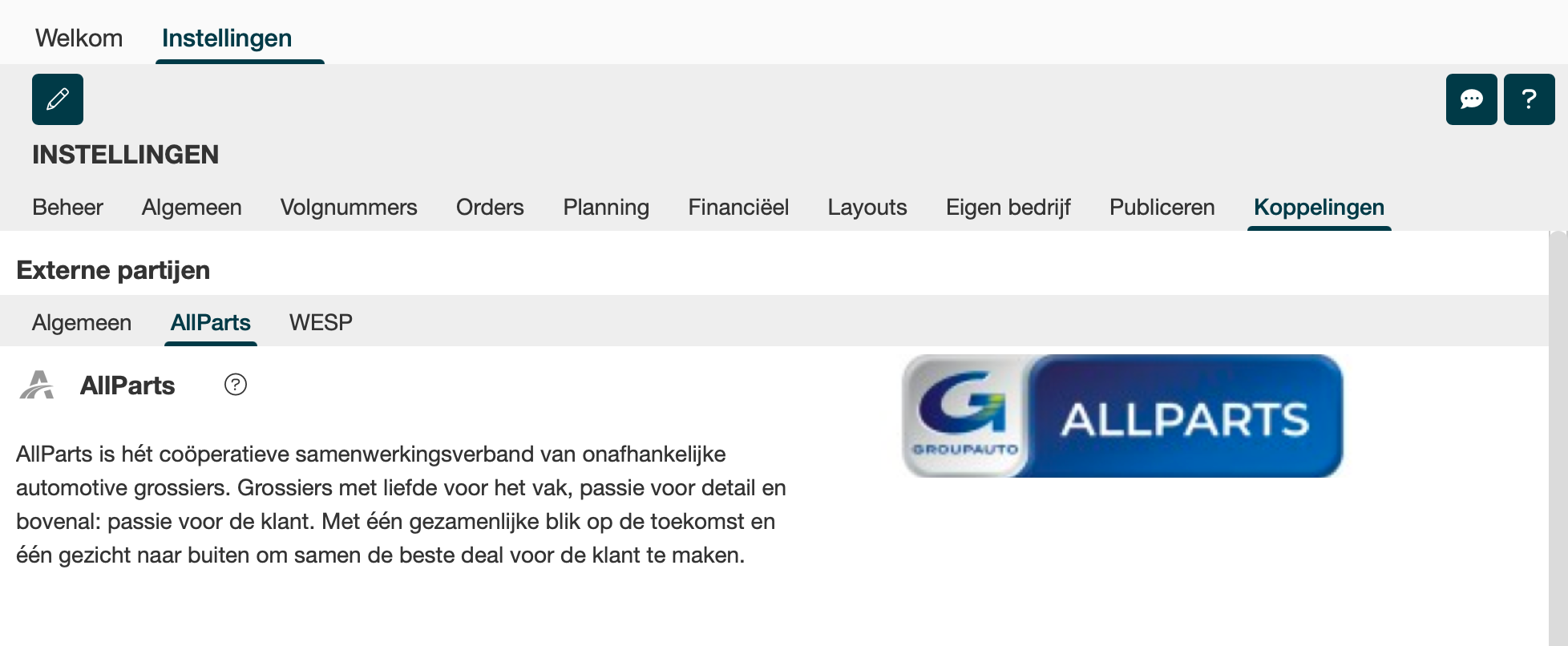 De volgende aanpassingen zijn actief bij de koppeling: AllParts