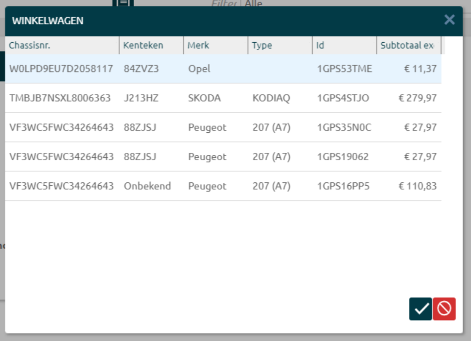 Als een winkelwagen als er geen herkenning is tussen de winkelwagen van Servicebook en de order in Autoflex |