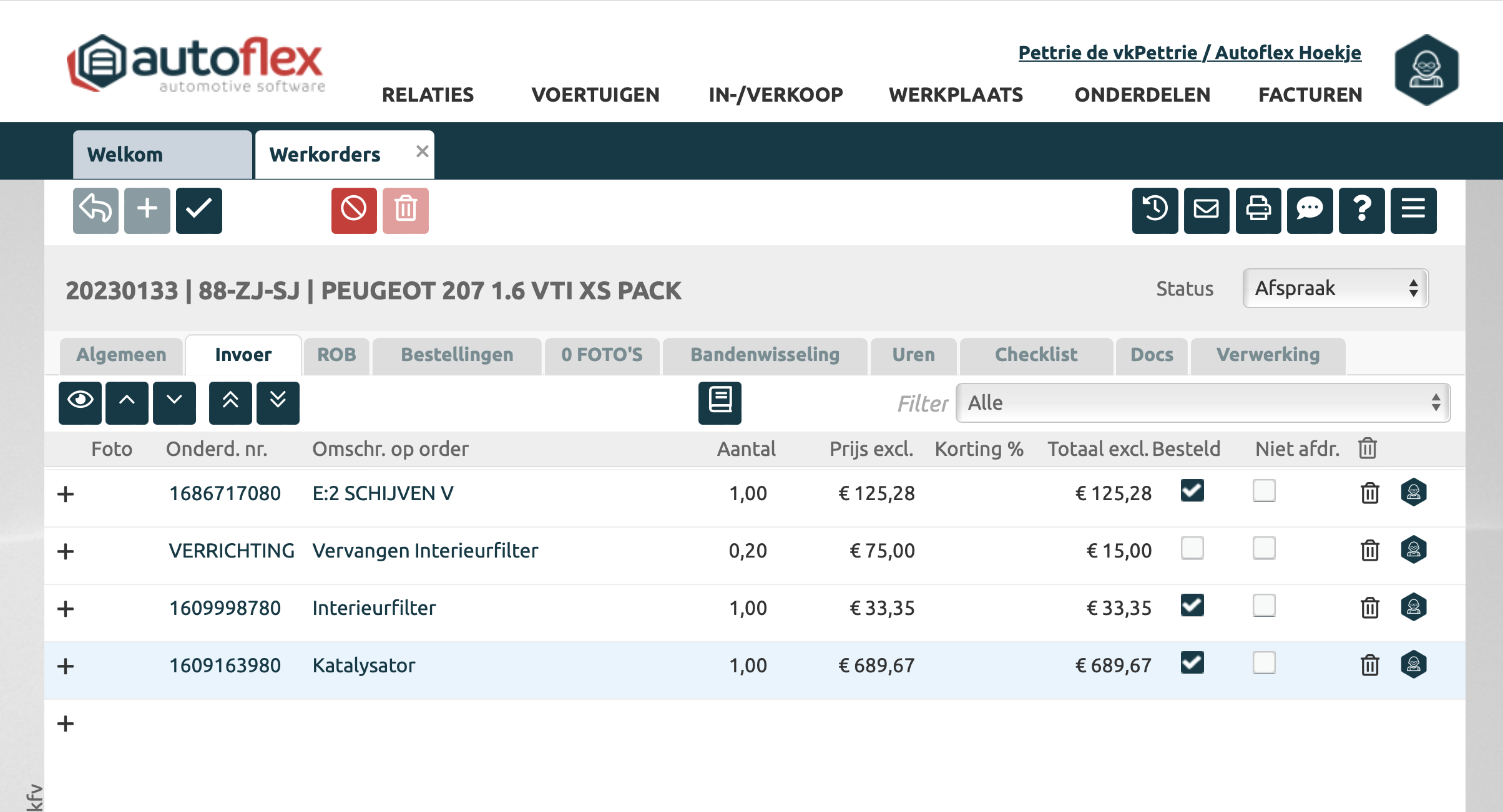 Hierna kan de order verder afgerond worden in Autoflex De onderdelen zijn nu niet besteld, dit moet je handmatig doen in het portaal van Stellantis. |
