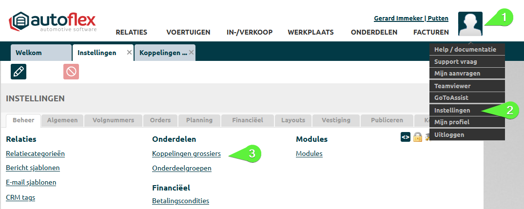 In het tabblad “Beheer” kies je “Koppelingen grossiers” |