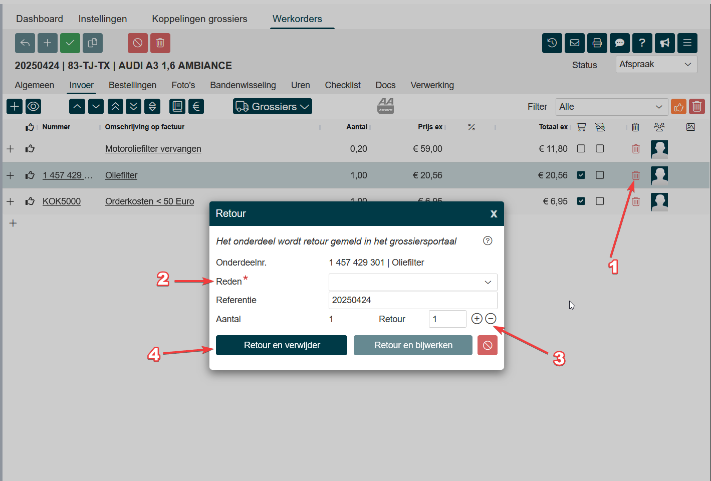 Retour sturen van onderdelen |