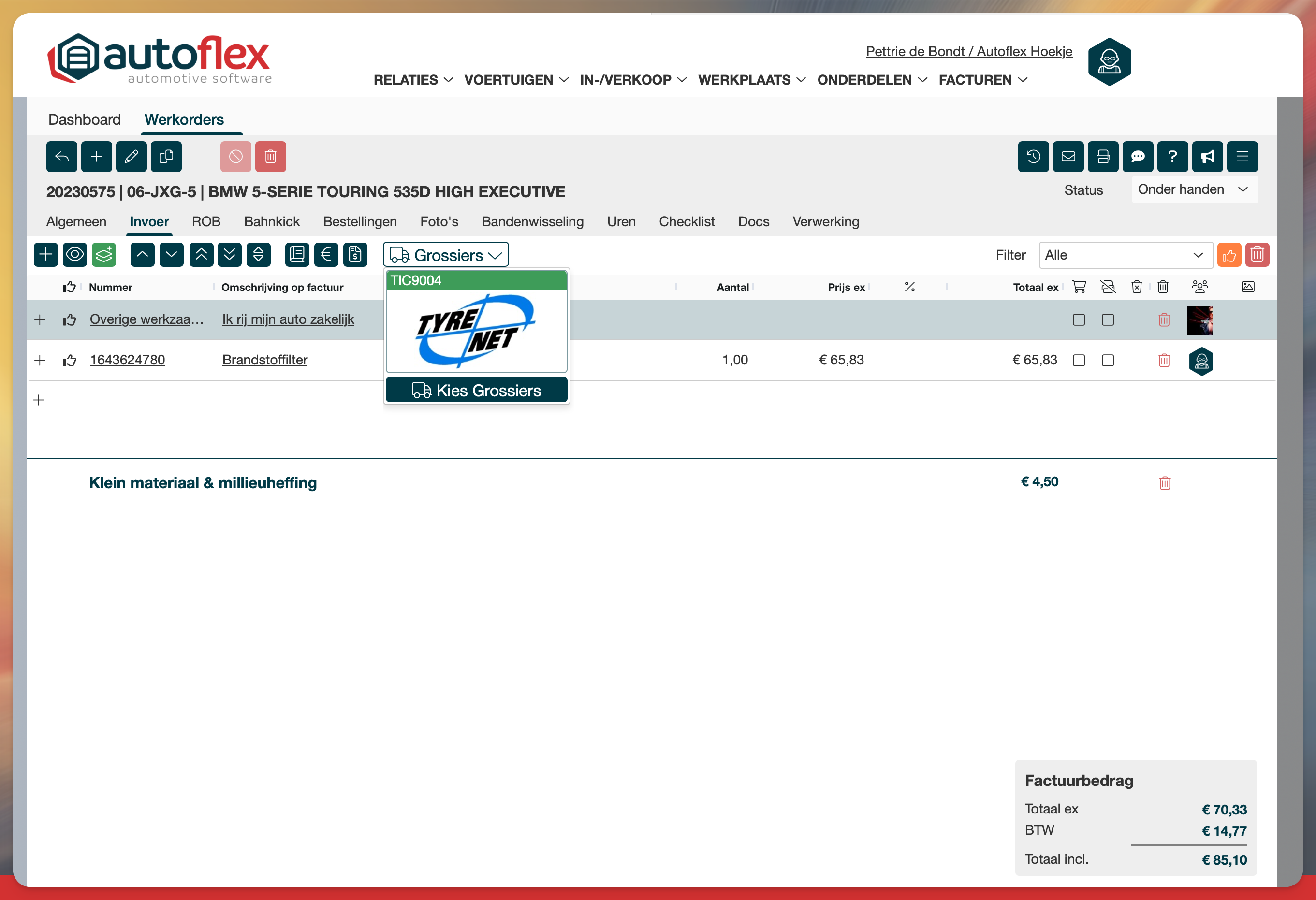 Bestel NIET via de bestel in het Tyrenet scherm, doe dit altijd vanuit het Autoflex scherm (optie 4)