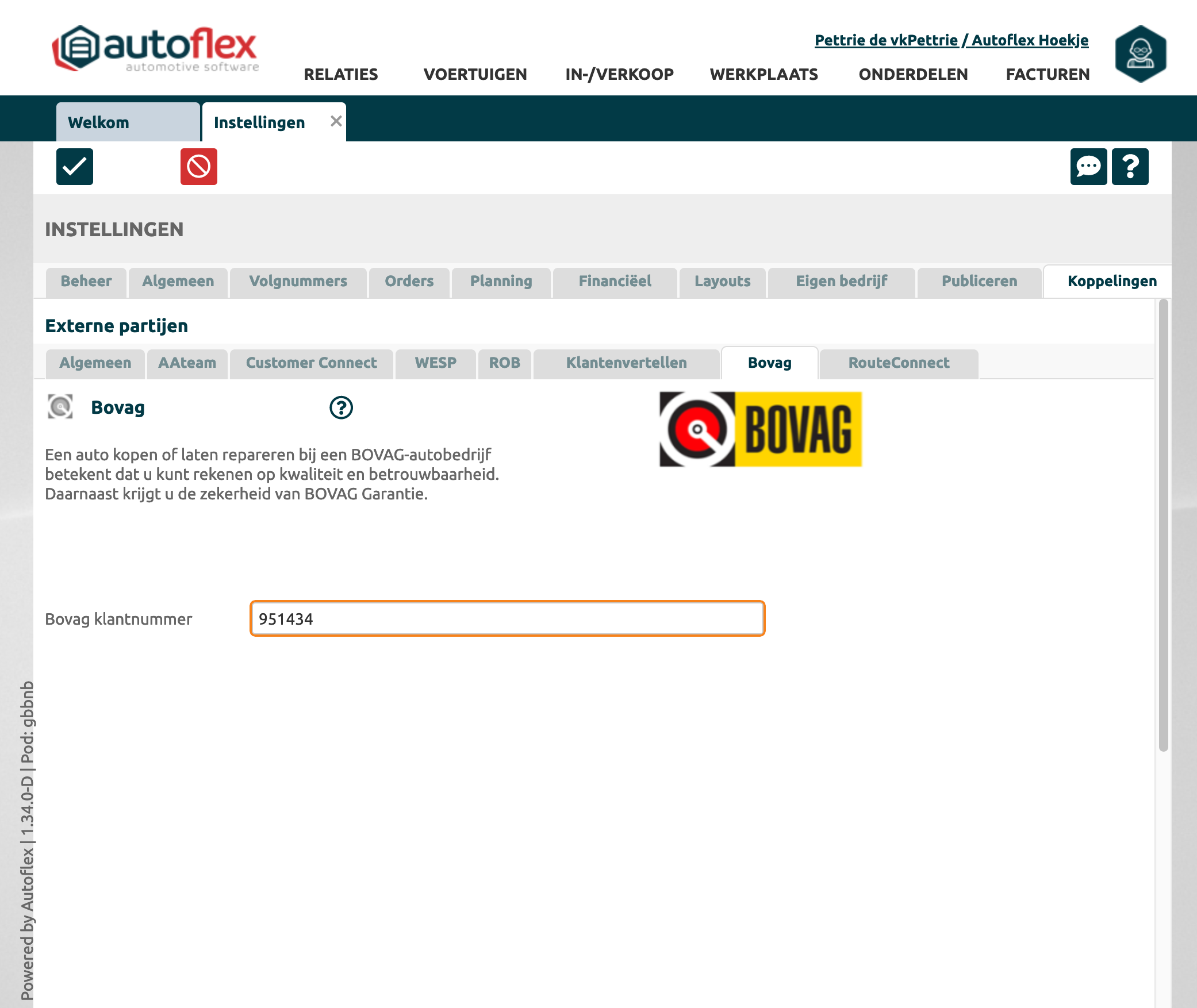 Vul het Bovag klantnummer in, dit wordt dan automatisch op het formulier ingevuld. |