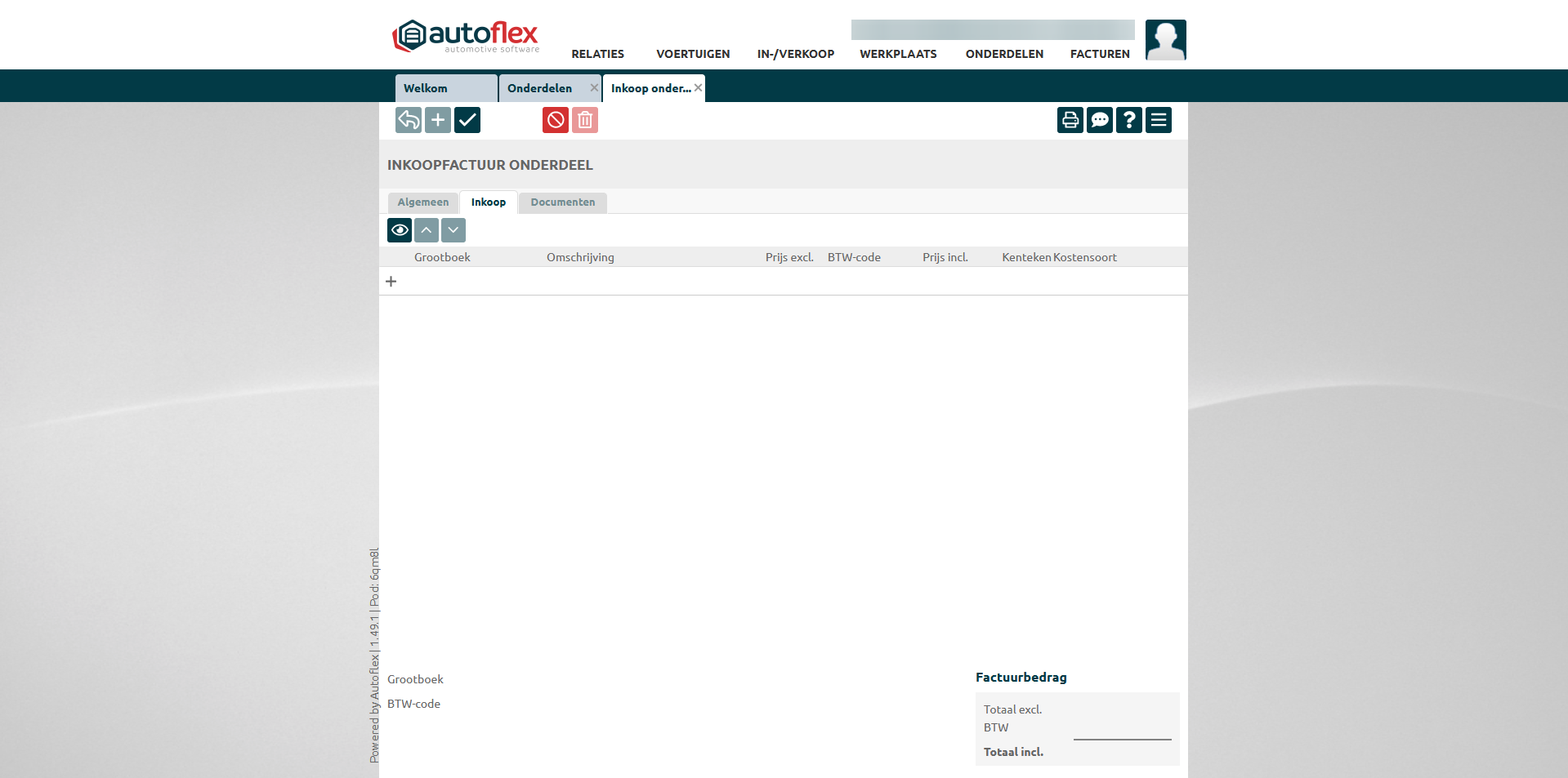 Zo kun je via "Onderdeel" de voorraad onderdelen invoeren en via "Overige" het restant van de inkoopfactuur invoeren.