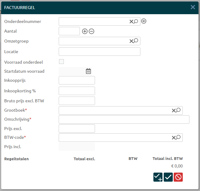 Factuurnummer: dit is een verplicht veld. Als je een onderdeel inkoopt van een particulier kun je een factuurnummer laten genereren. Dit nummer wordt ook gebruikt bij het doorboeken naar het gekoppelde boekhoudpakket