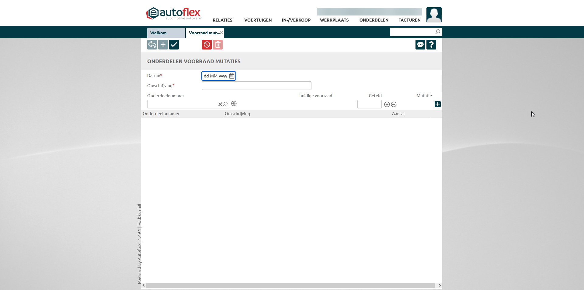 Als je beschikt over de module "Voorraadbeheer onderdelen", kun je voorraadmutaties invoeren.