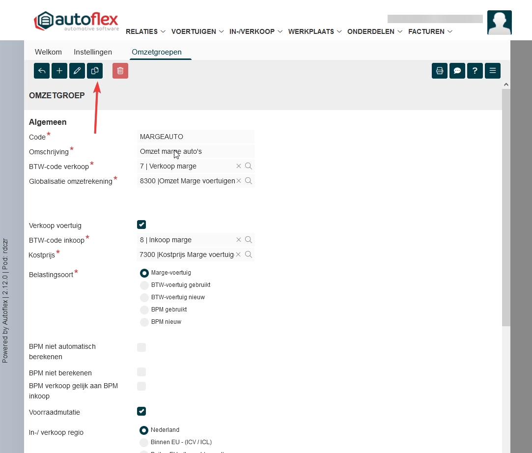 Om de marge omzetgroep te kopiëren moet je eerst naar de omzetgroep gaan. |