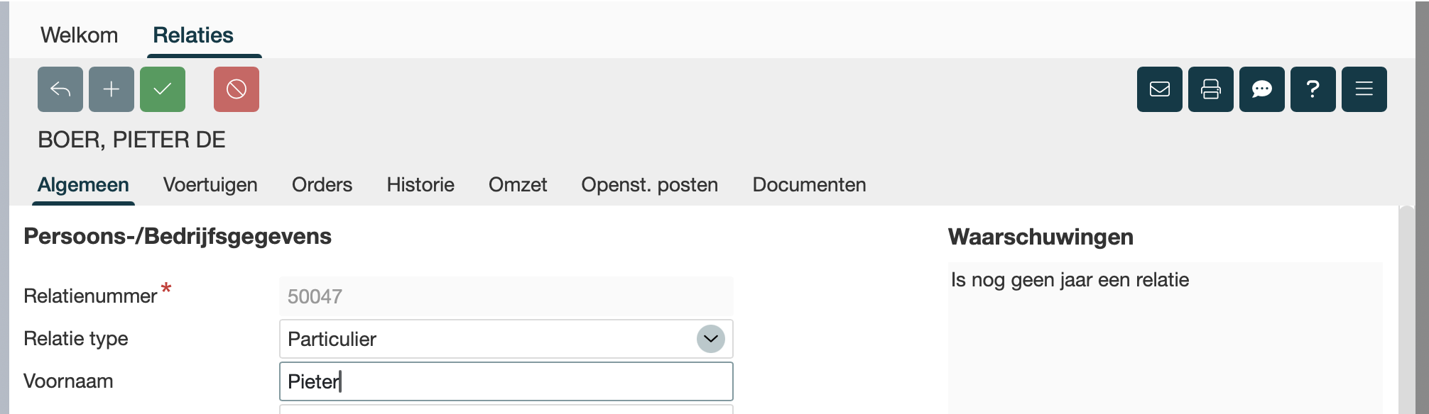 Na het aanmaken of openen van een relatie kom je in het detail-scherm. |