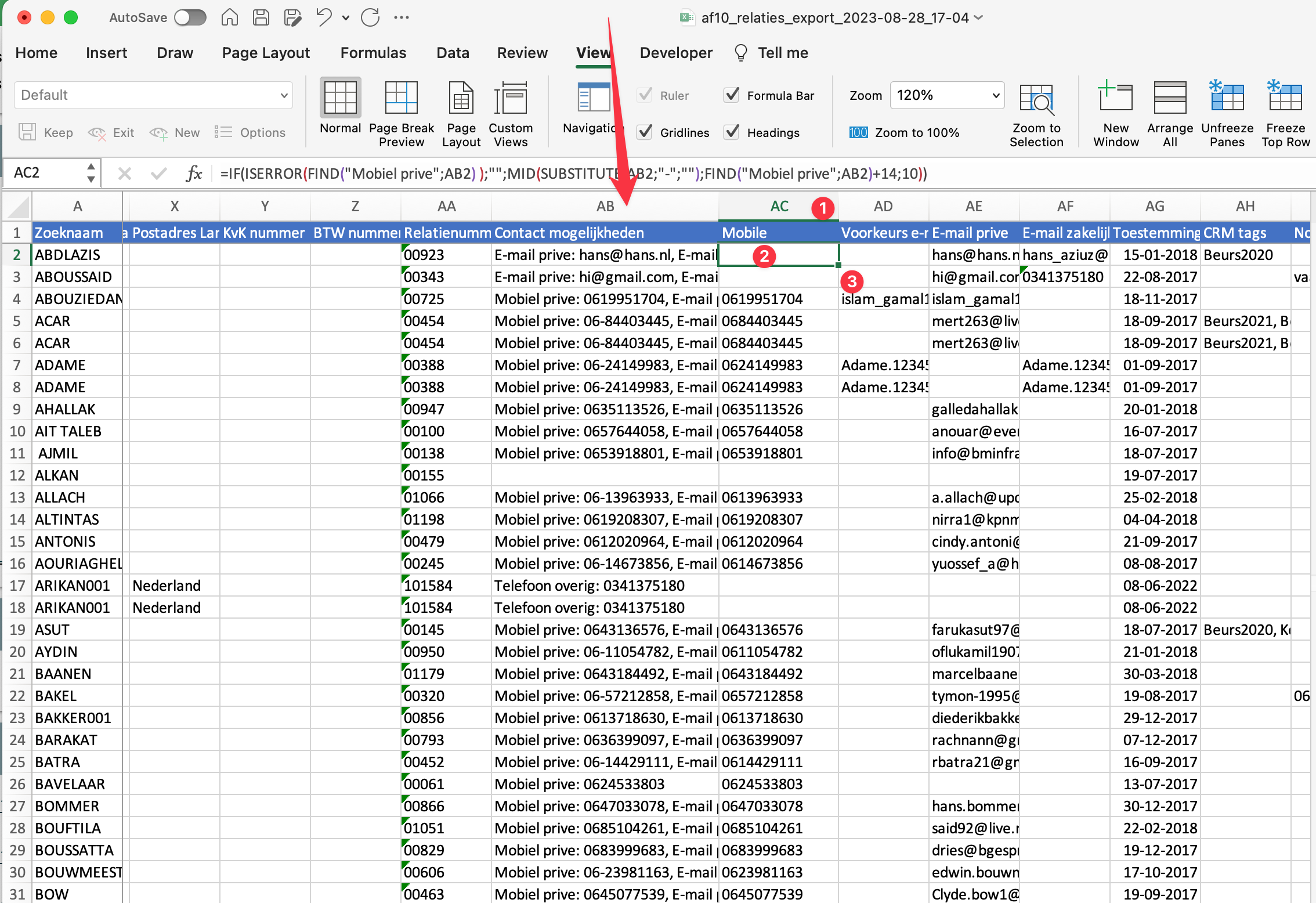 Hierbij de Excel formule voor het scheiden van de 06 nummers Als je na de export in Excel: