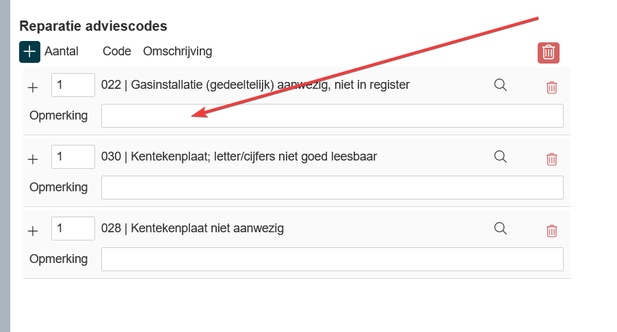 Na het selecteren van de juiste codes kun je in het afmeldscherm per code een opmerking toevoegen. Meldt vervolgens het voertuig af. |