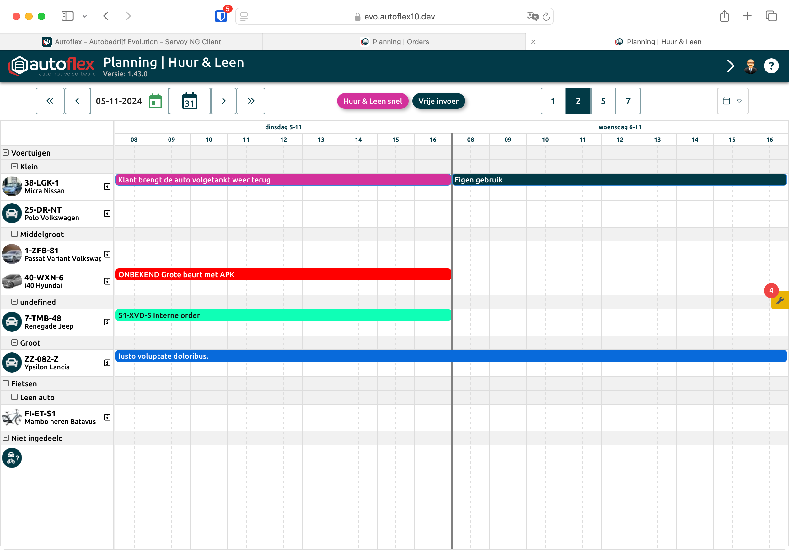 Werken met planning voor huur- en leenvoertuig