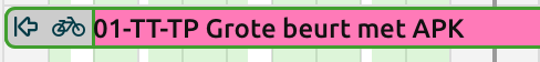 Groene rand en groen blokje, het voertuig is aanwezig gemeld | |