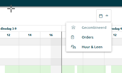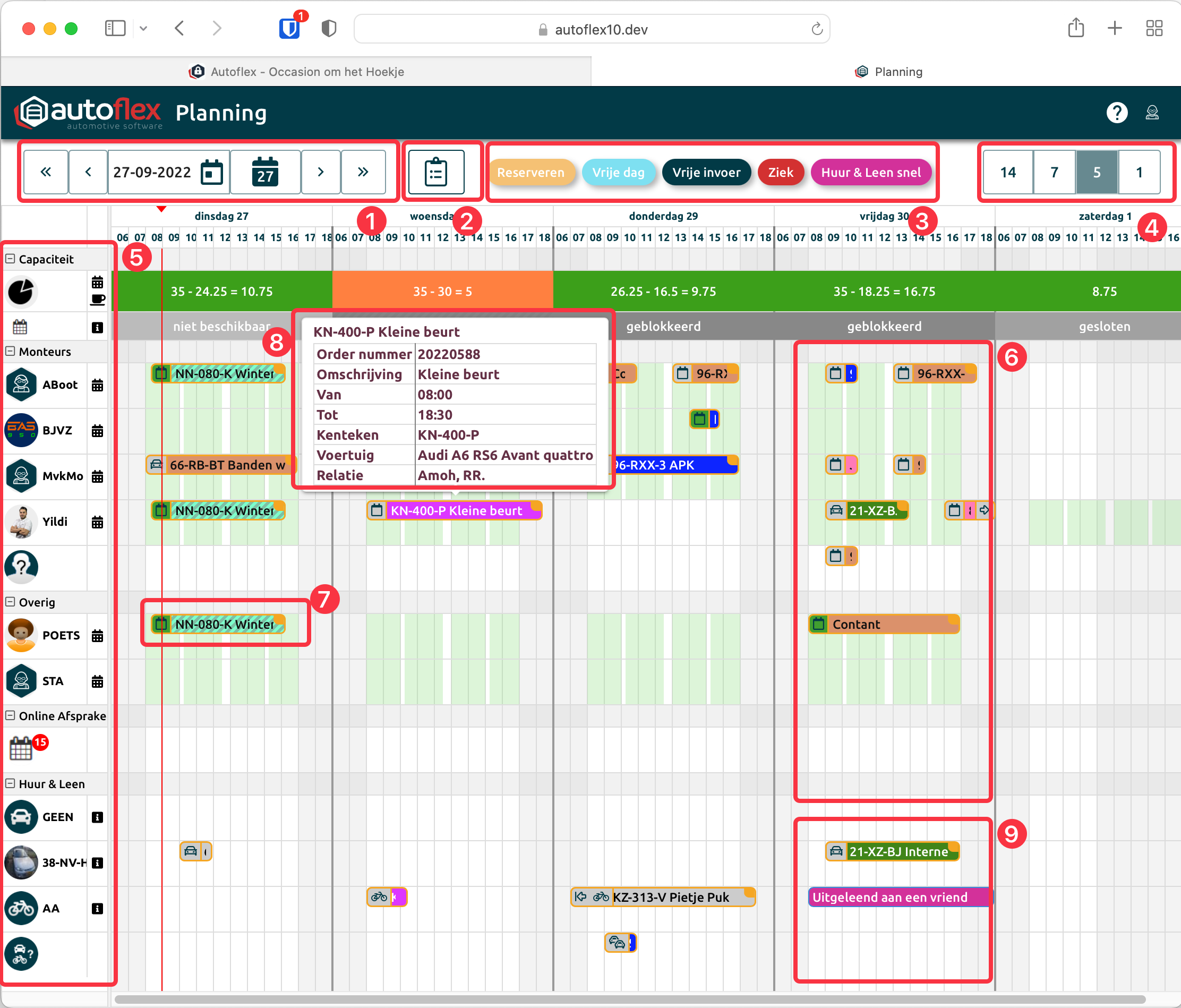 Kies voor de weergave van het aantal zichtbare dagen in de planning, keuze: 14 dagen 7 dagen, hele week 5 dagen, werkweek 1 dag, voor alle detail informatie |