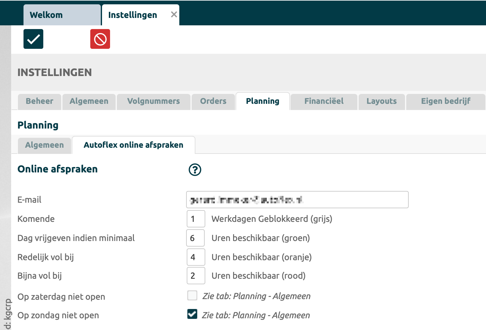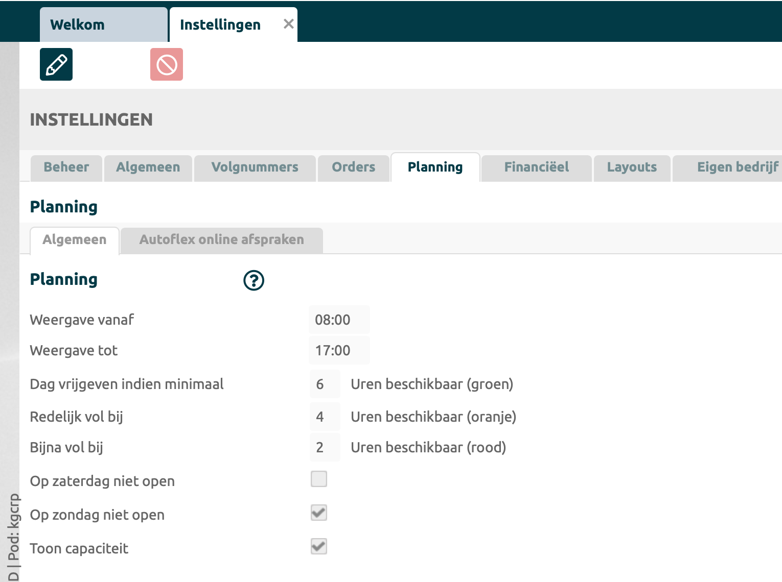 De komende dag kun je niet op deze manier vrijgeven, deze wordt beheerd vanuit de: Instellingen → planning → Autoflex Online Planning