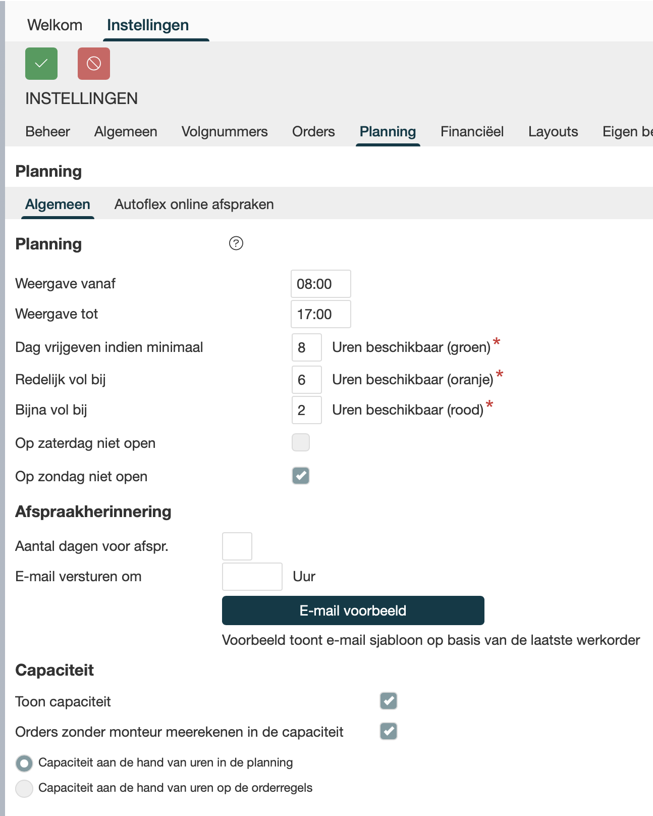 Instellingen → Planning → Algemeen |