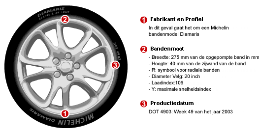 Wat betekenen alle markering op de band? Hoe lees je de bandenmaat? Wat betekende DOT, Department Of Transportation?