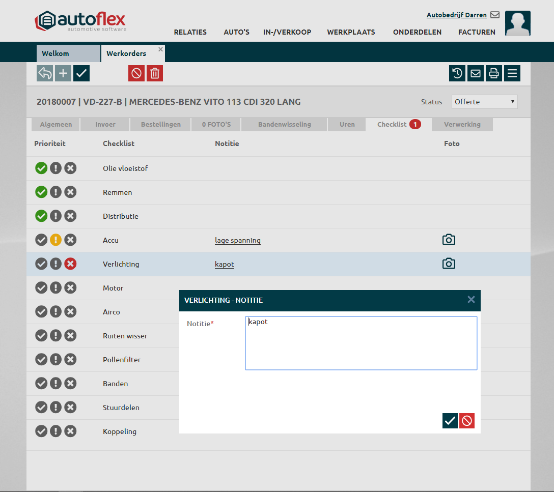 Ook kan je een notitie toevoegen (dit is bij Kruisje verplicht!) en eventueel een foto per checklist item.