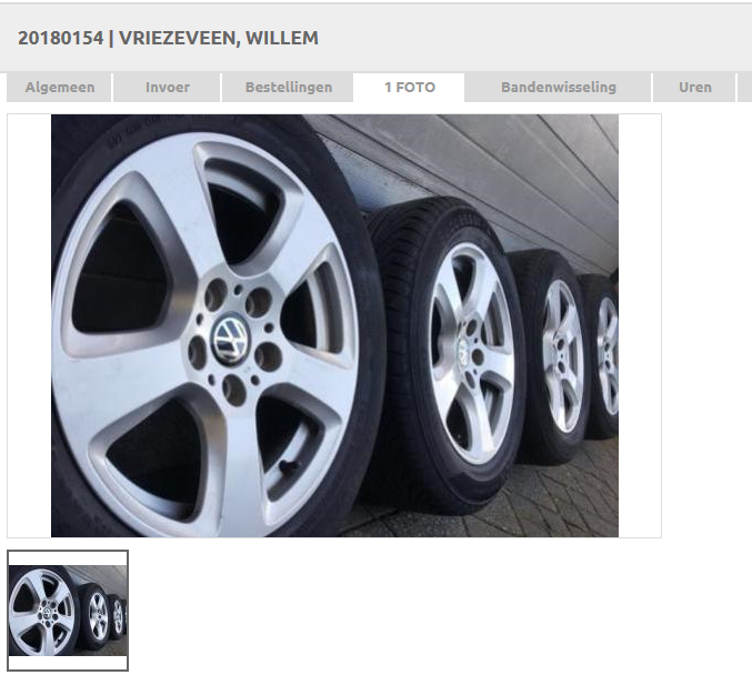 Een overzicht van de toegevoegde foto’s in de werkorder. De foto toevoegen kan bij de order regel, 2e tab |