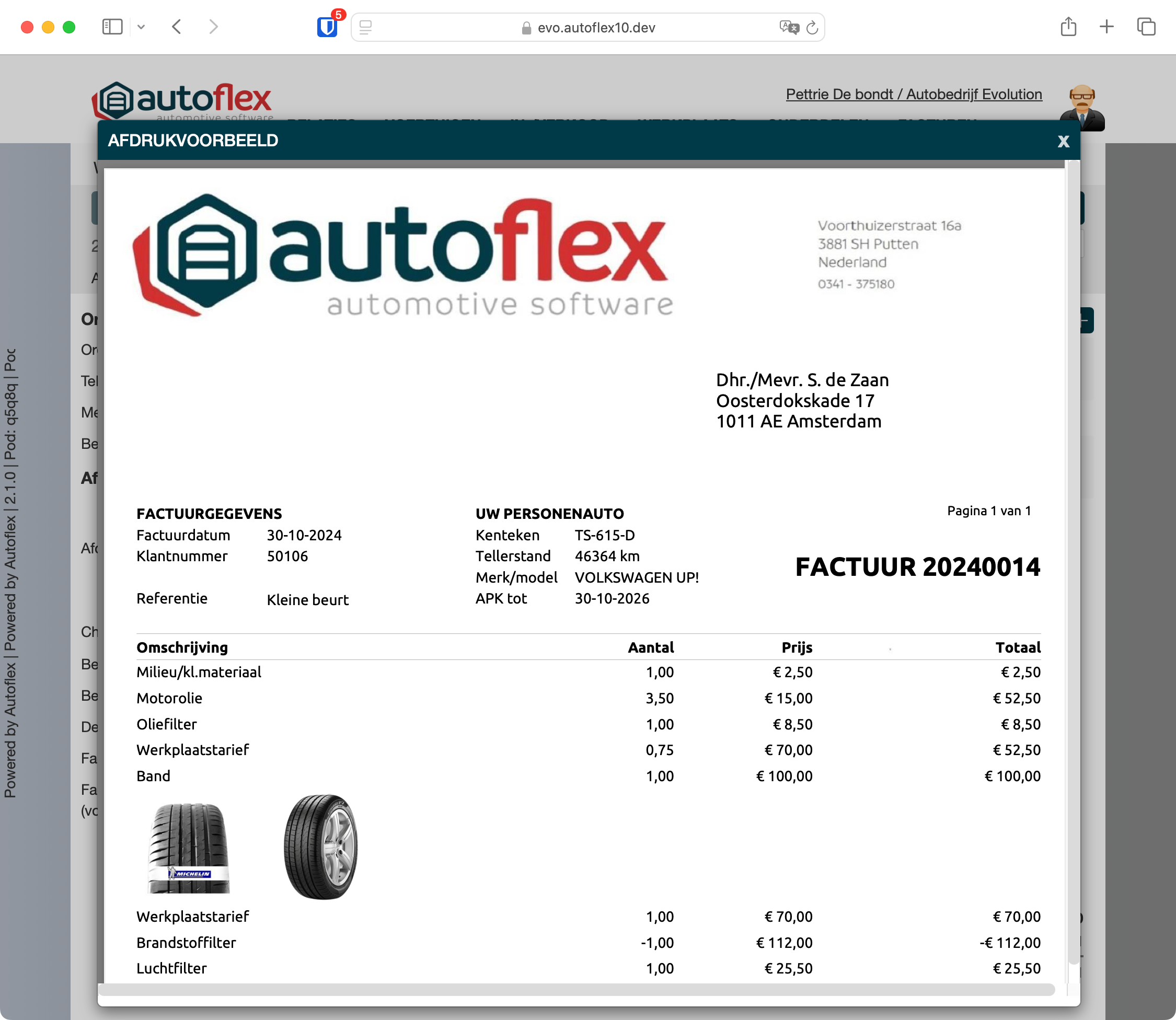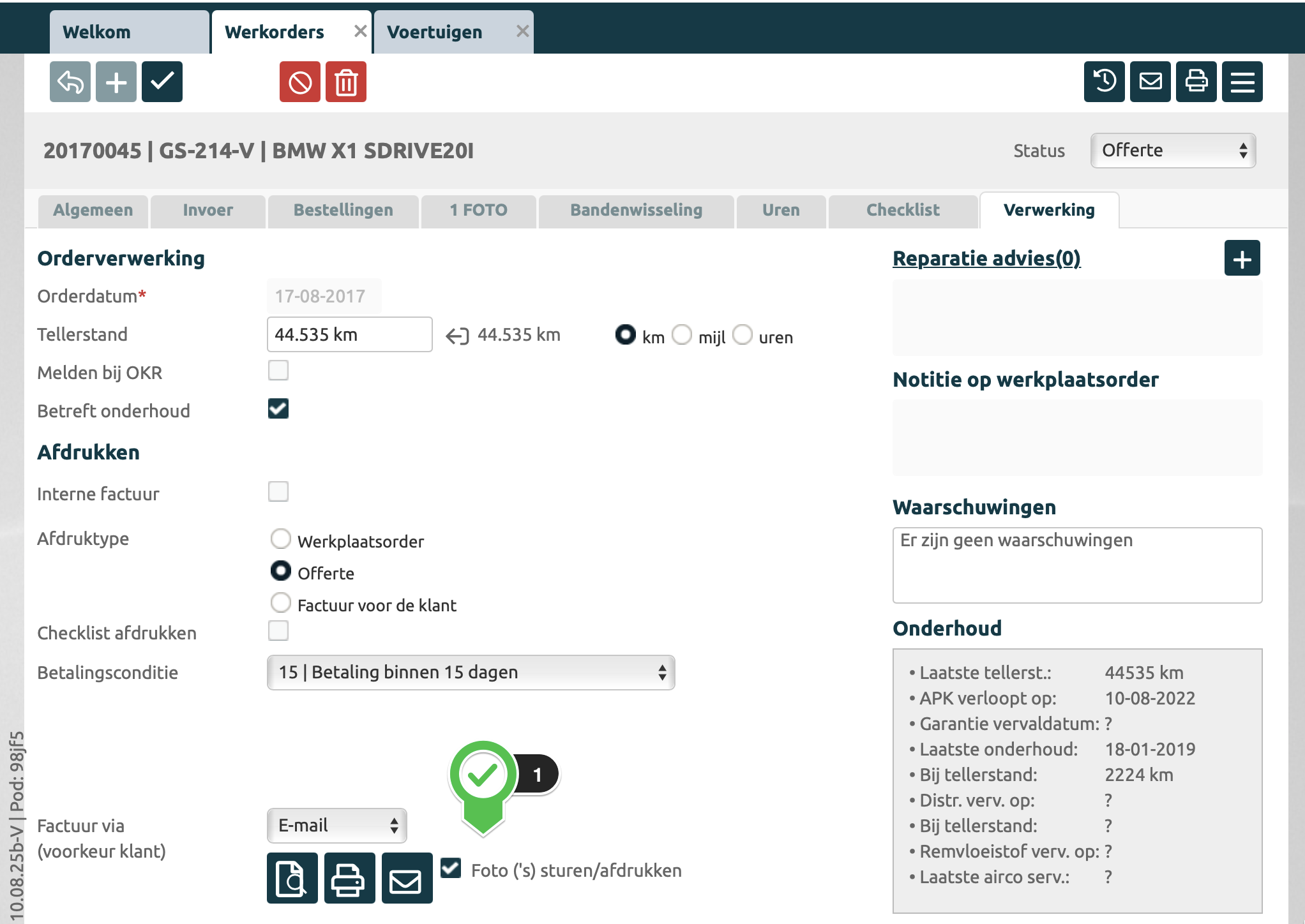De foto(s) die bij een onderdeel zijn toegevoegd in de tab Invoer bij de orderregels, is zichtbaar. Deze kan bij verwerking worden afgedrukt of worden gemaild naar de klant.