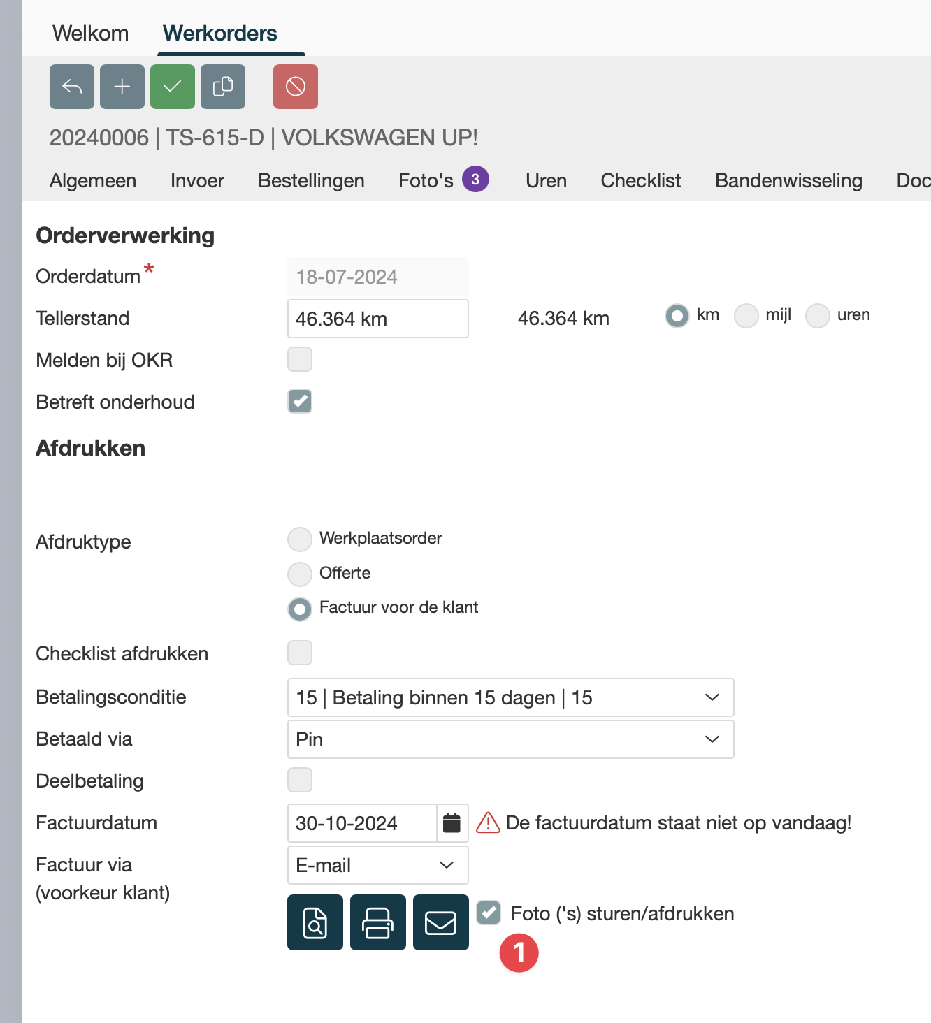 Bij het verwerken van de order kan er worden gekozen om de foto’s toe te voegen |
